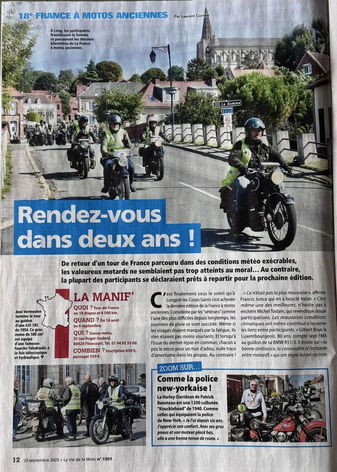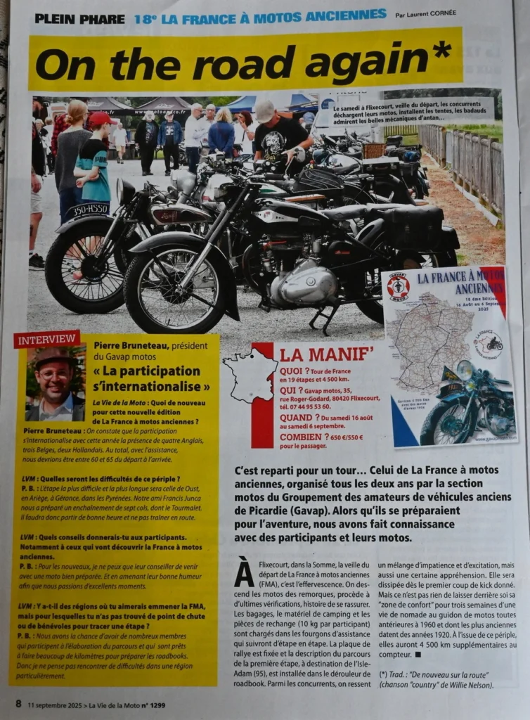 La France à Motos Anciennes 2025 dans LVM. Edition du 11 septembre 2025 Edition du 18 septembre 2025 Edition du 25 septembre 2025